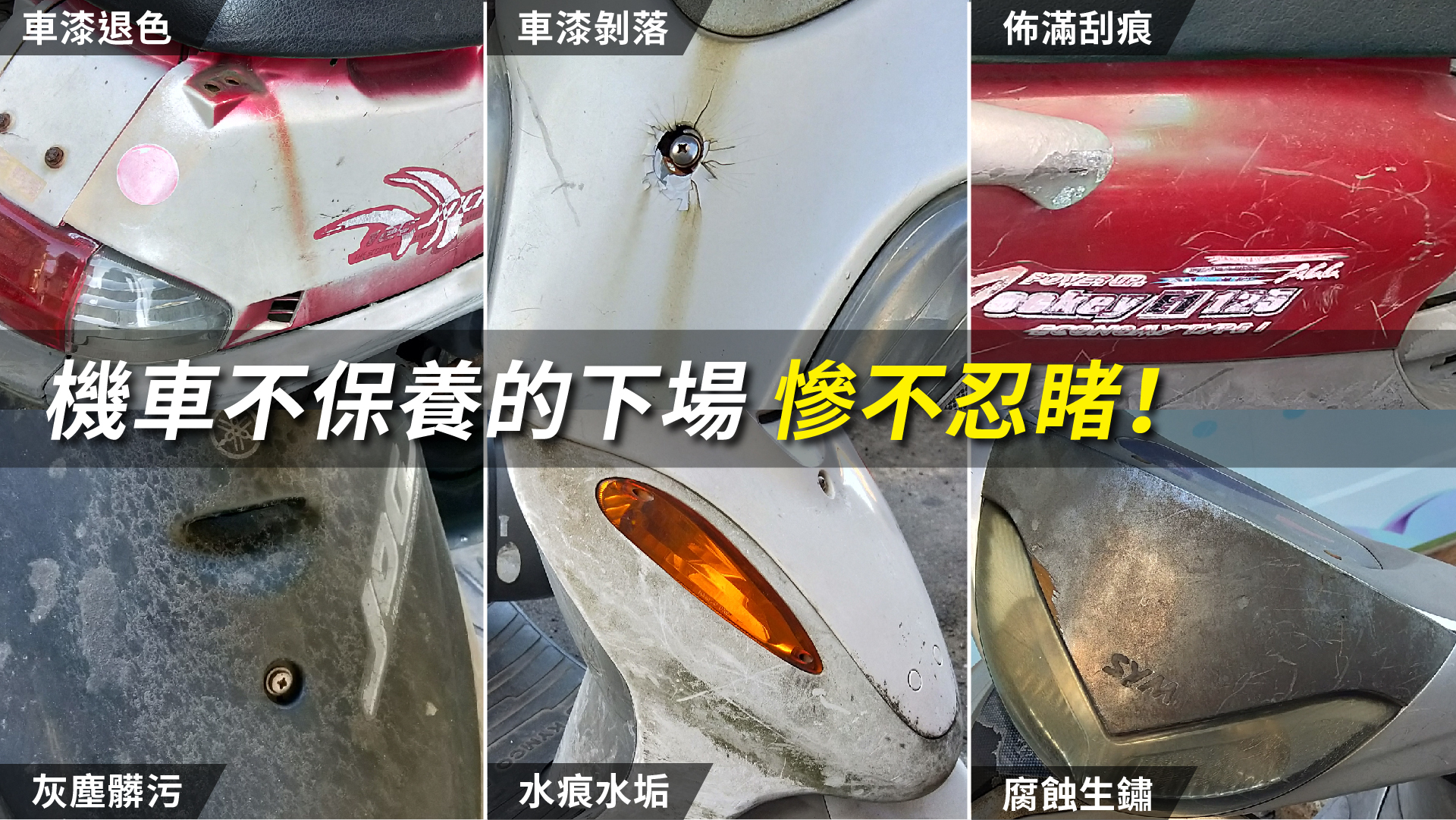 機車髒了怎麼辦?烤漆褪色怎麼辦?傳動應該怎麼洗?發白的塑膠件還有救嗎?明明就很常洗車,但為什麼都洗不亮,你是不是也有以上這些問題呢?