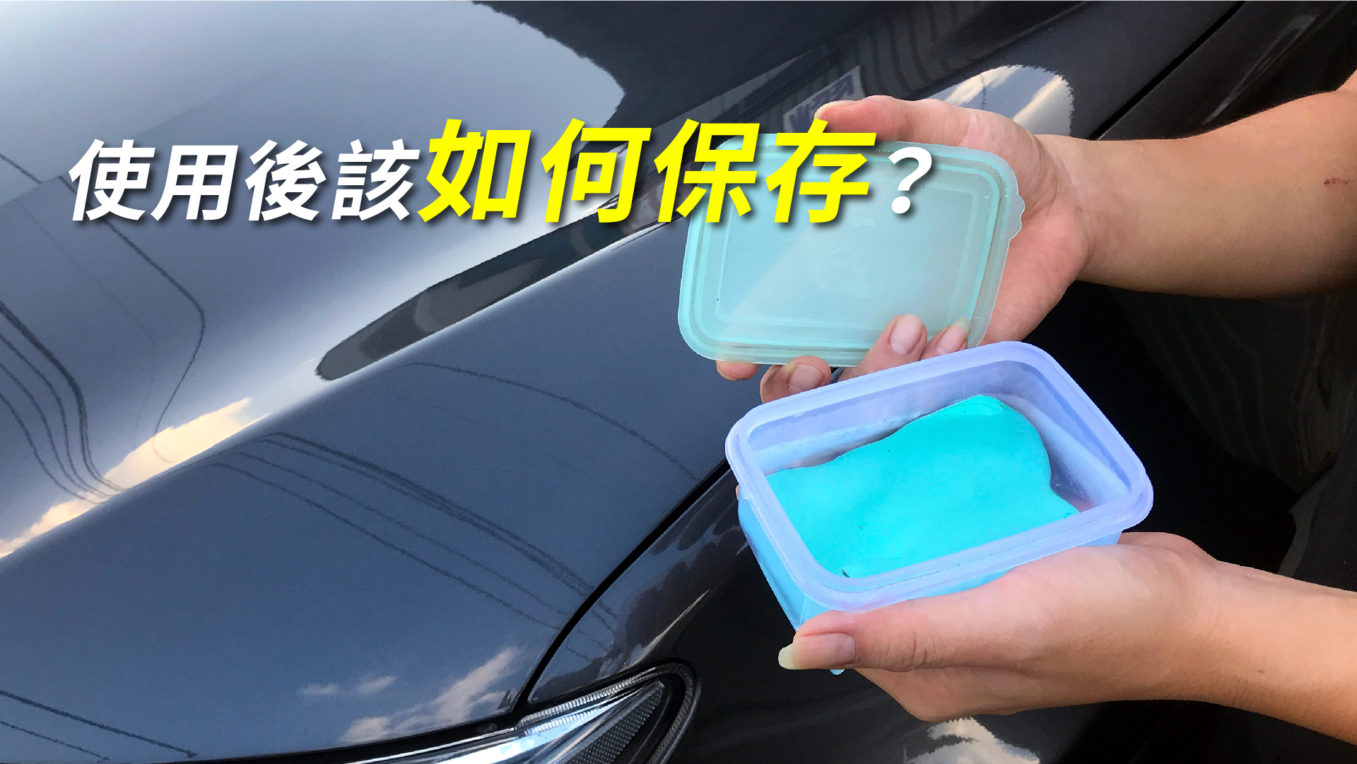 美容黏土使用完之後,若能當拋棄式是最安全的,但若要接著下次使用,請於沖洗乾淨後,找一個密封容器泡純水保存(不要用自來水),以免黏土變硬變質。最後,車子深層清潔後若能搭配打蠟保養,更可以有效保護愛車減少髒污附著,還能使車蠟的效果延長,更佳突顯車漆亮度。
