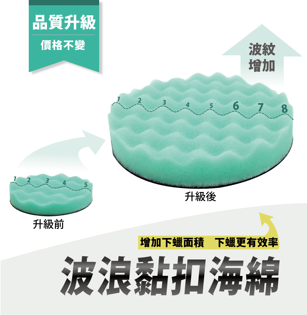 將黏扣海綿沾黏於氣動打蠟機的5吋黏扣盤上,做下蠟使用