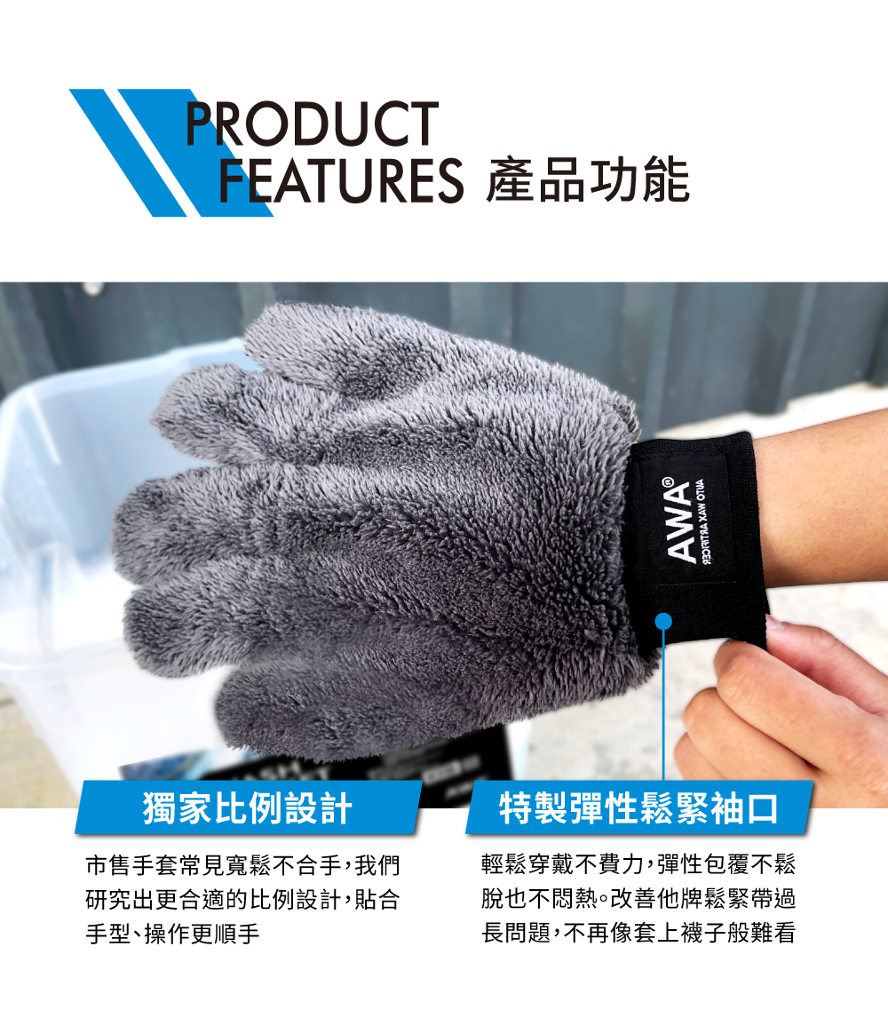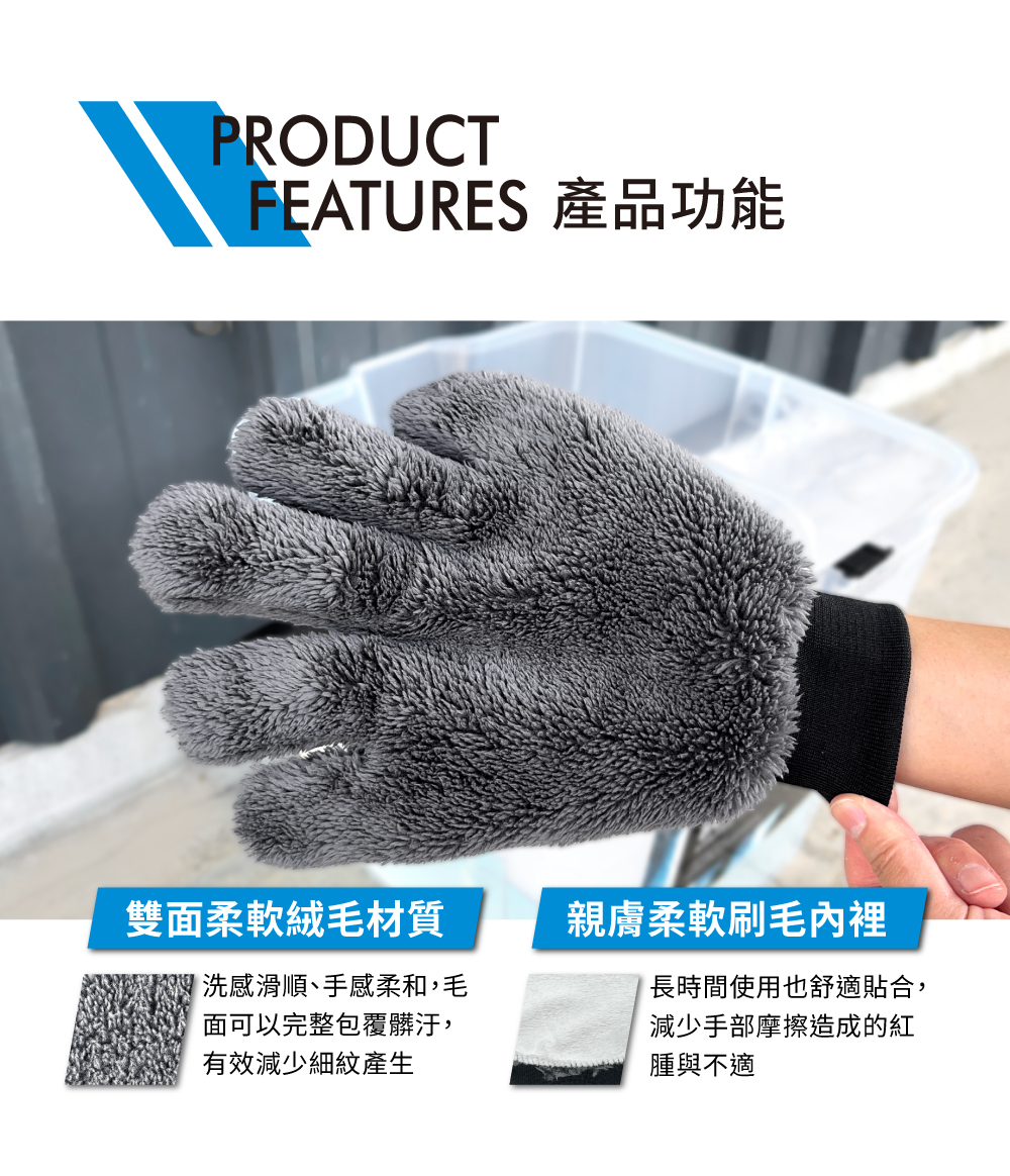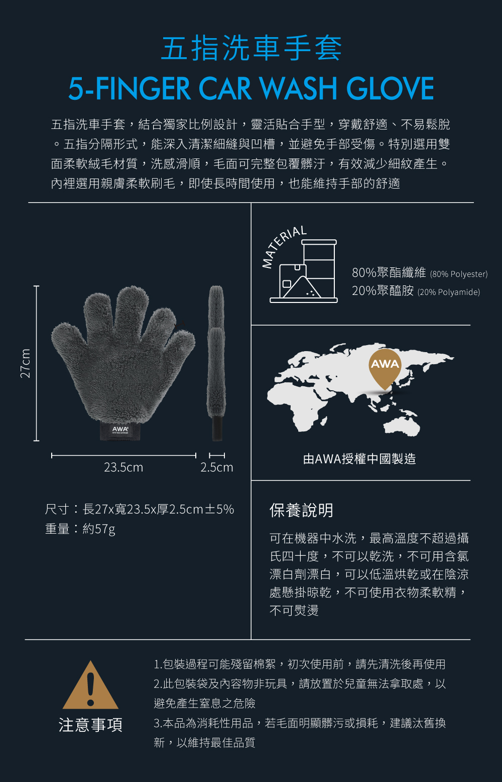 A0063 五指洗車手套 灰色 洗車手套/洗車海棉/海綿/洗車清潔