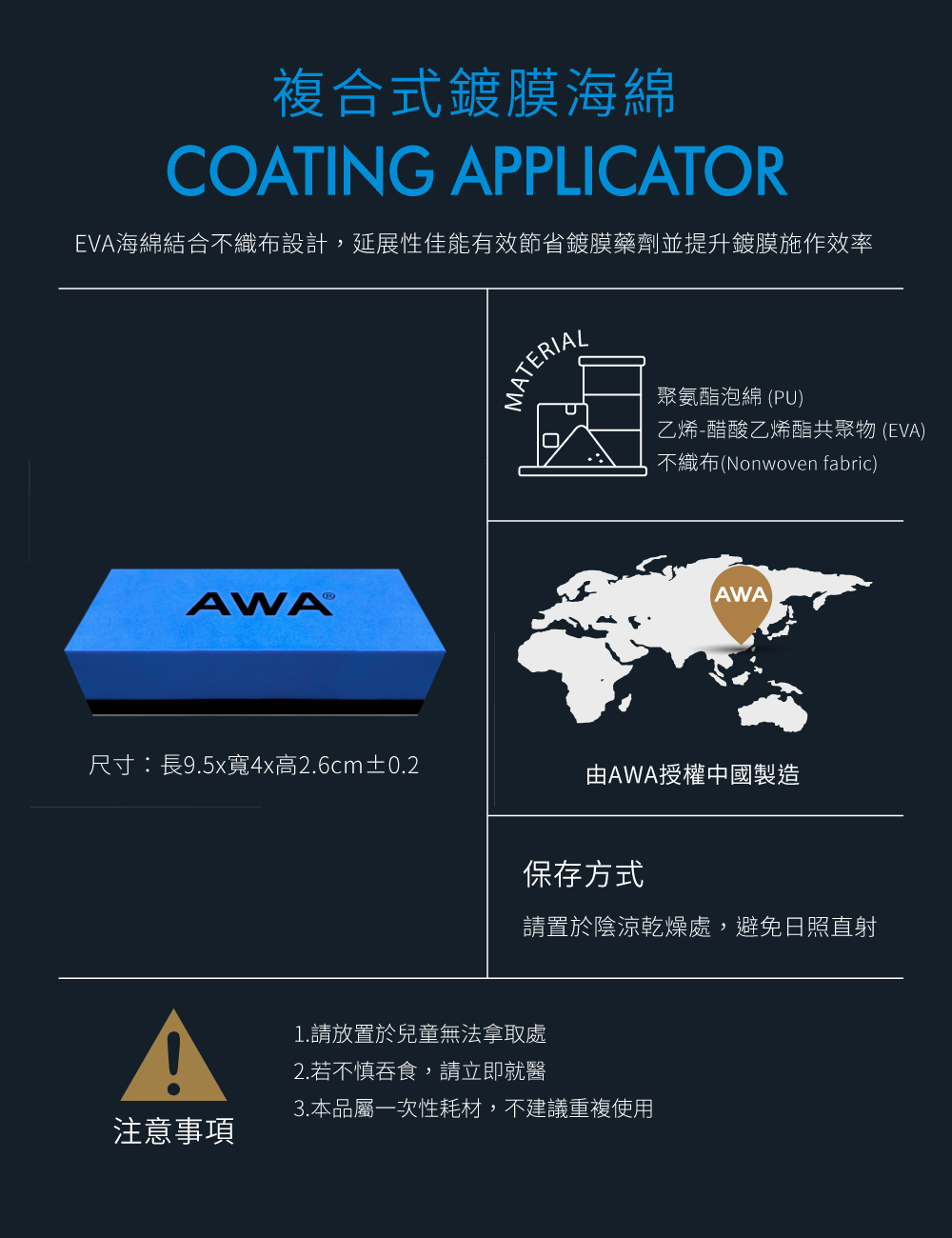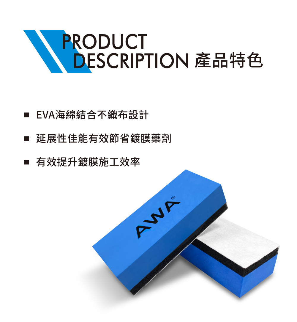 EVA海綿結合不織布設計,延展性佳能有效節省鍍膜藥劑並提升鍍膜施作效率