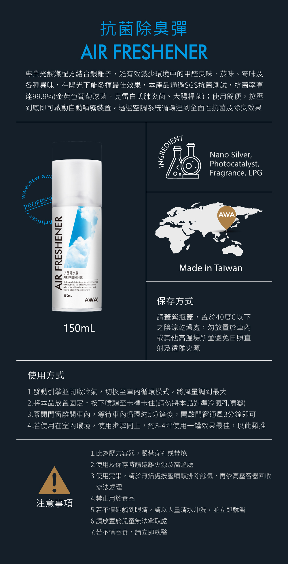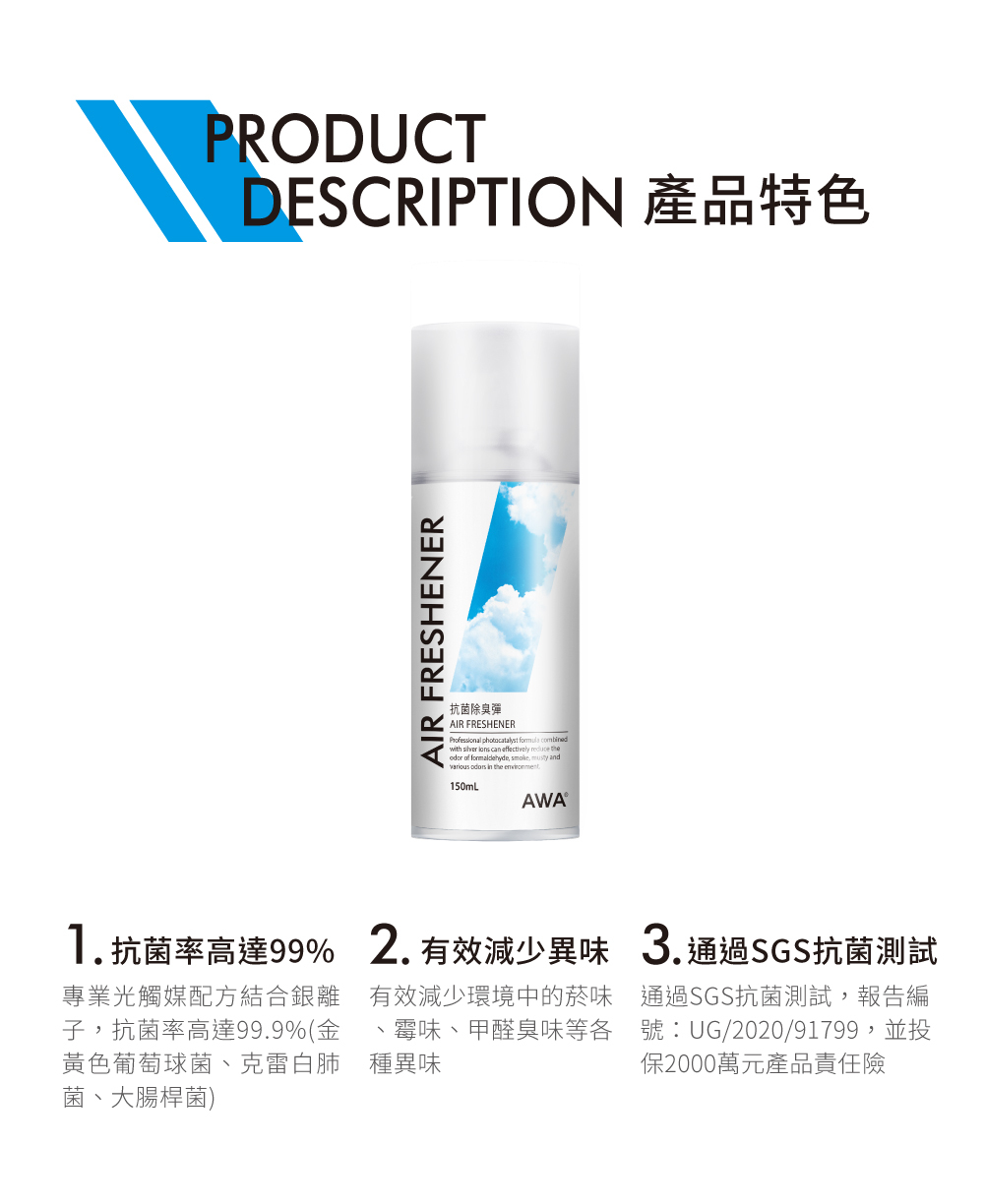 B0036 AWA抗菌除臭彈 150ml 空氣清淨劑/抗菌除臭/光觸媒/銀離子/異味消除