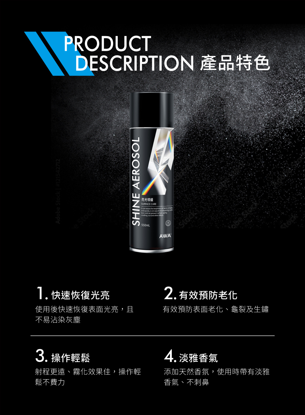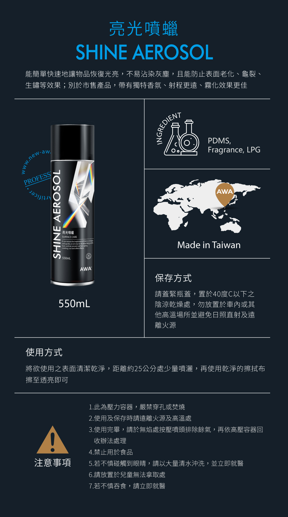 B0037 AWA亮光噴蠟 550ml 汽車/機車/內裝/塑膠/機車保養