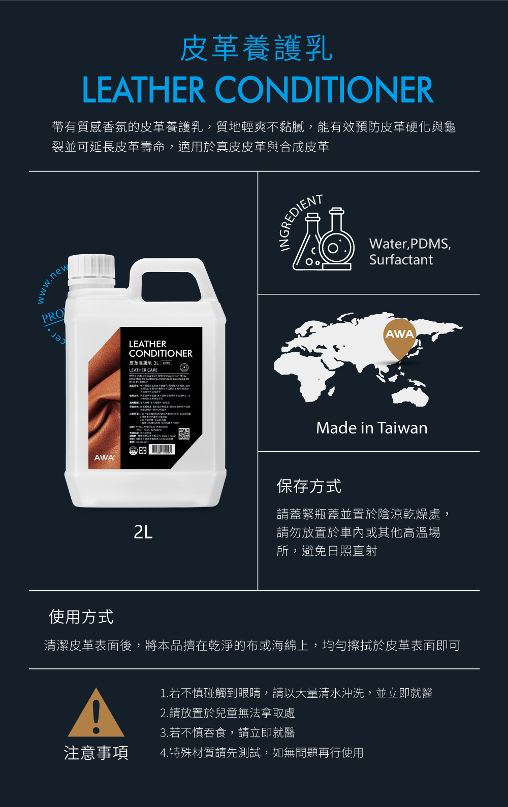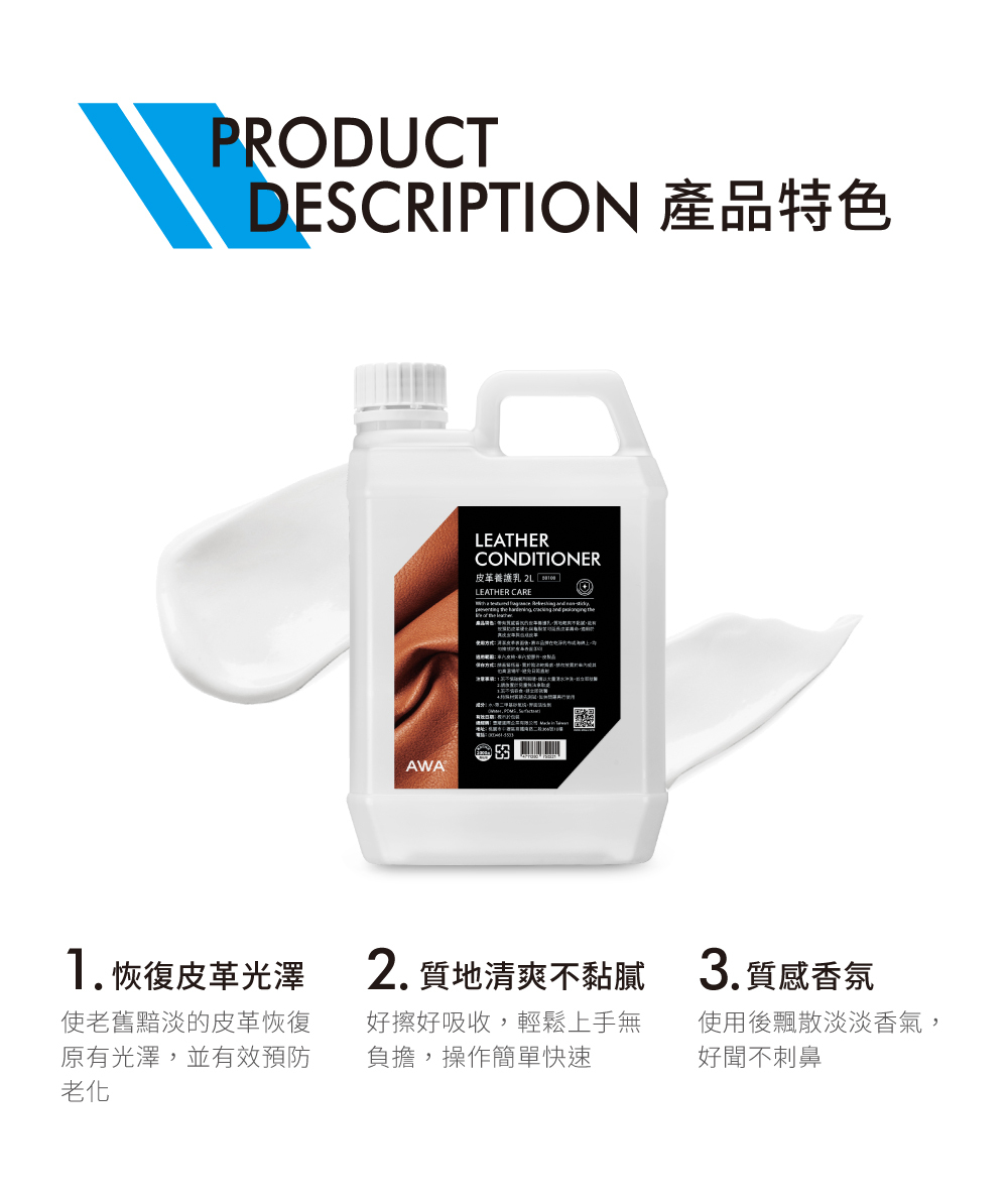 B0100 AWA 皮革養護乳 2公升 皮革乳/內裝保養/皮革保養