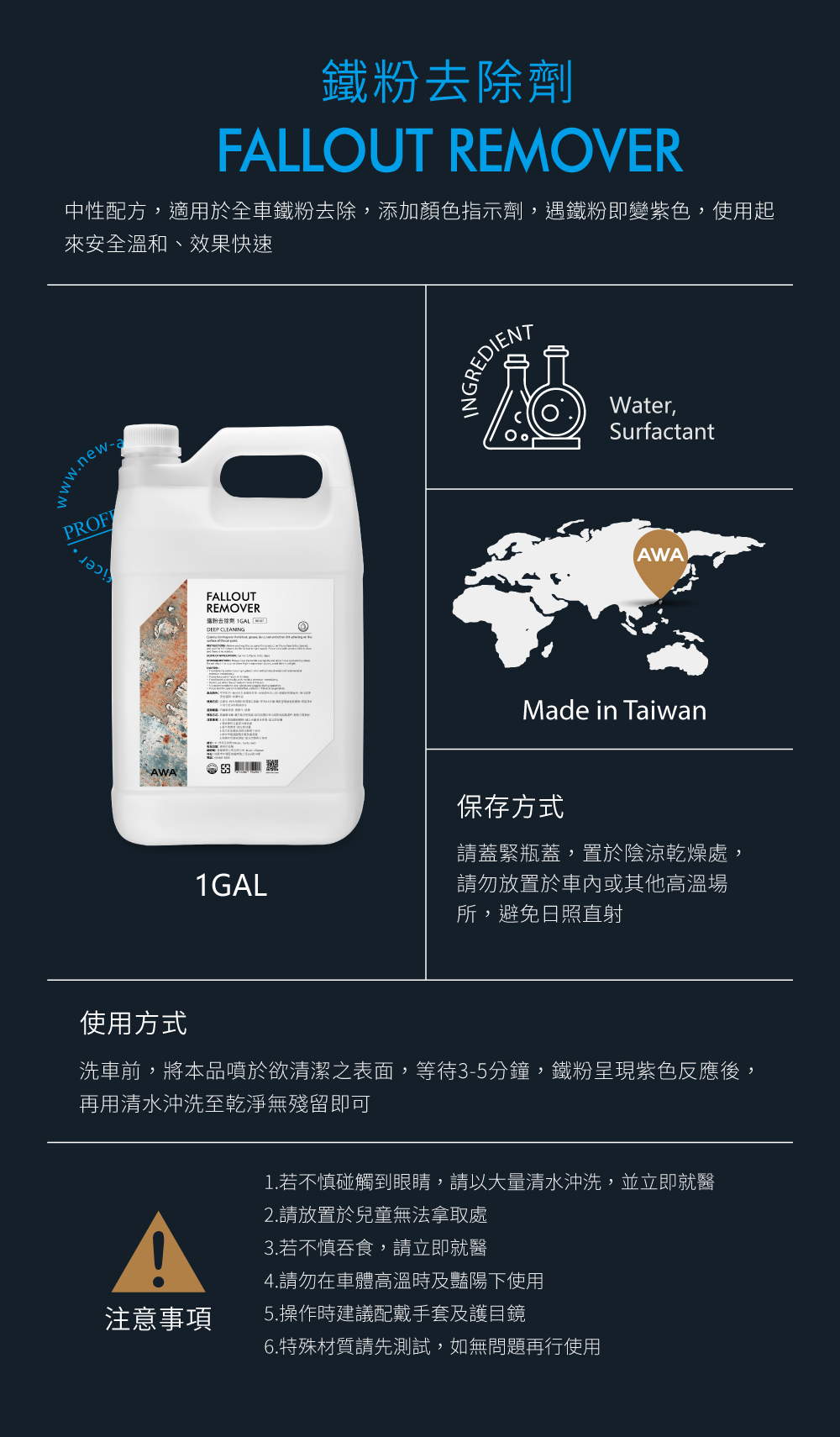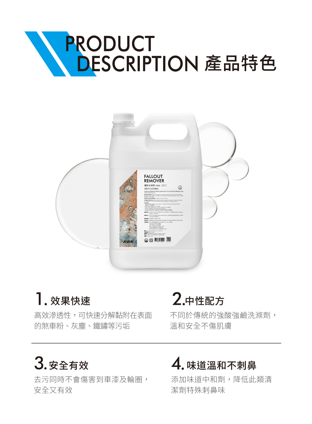 B0107 AWA 鐵粉去除劑 1加侖 清潔劑/拔除劑/軟化劑/分解劑/鐵屑/輪圈/汽車美容