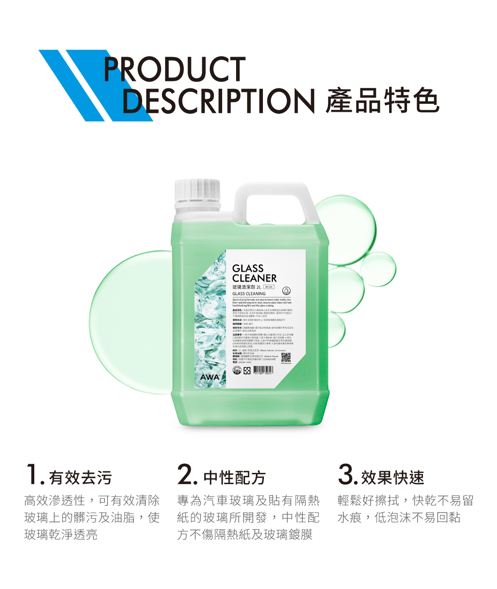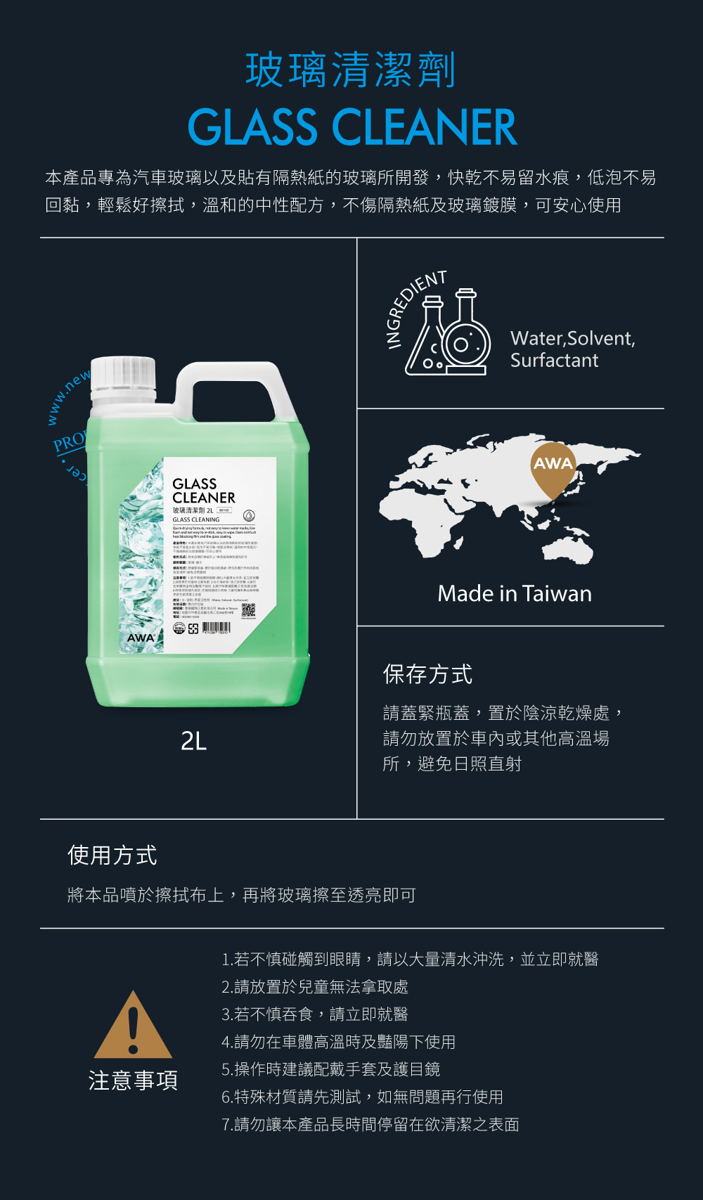 B0109 AWA 玻璃清潔劑 2公升 玻璃維護/玻璃明亮劑/洗車