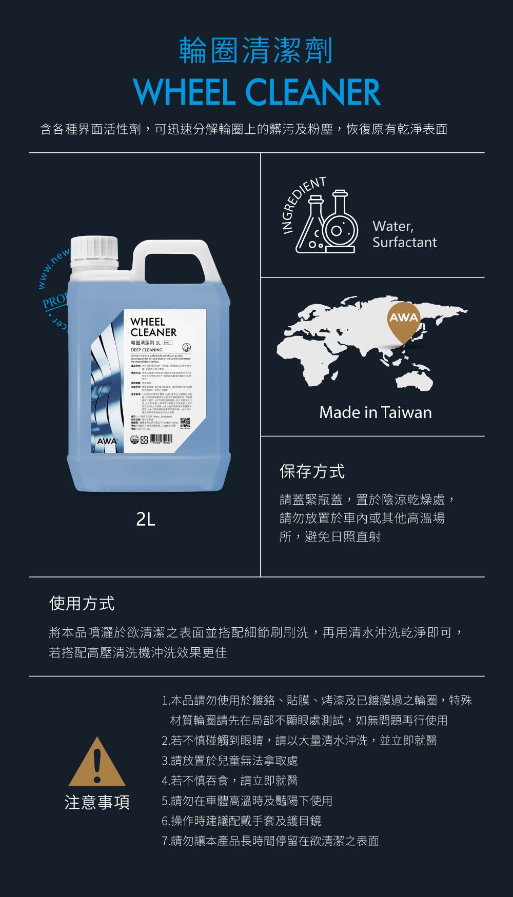 B0111 AWA 輪圈清潔劑 2公升 鋁圈清潔/輪圈清潔/鋼圈亮光/洗車