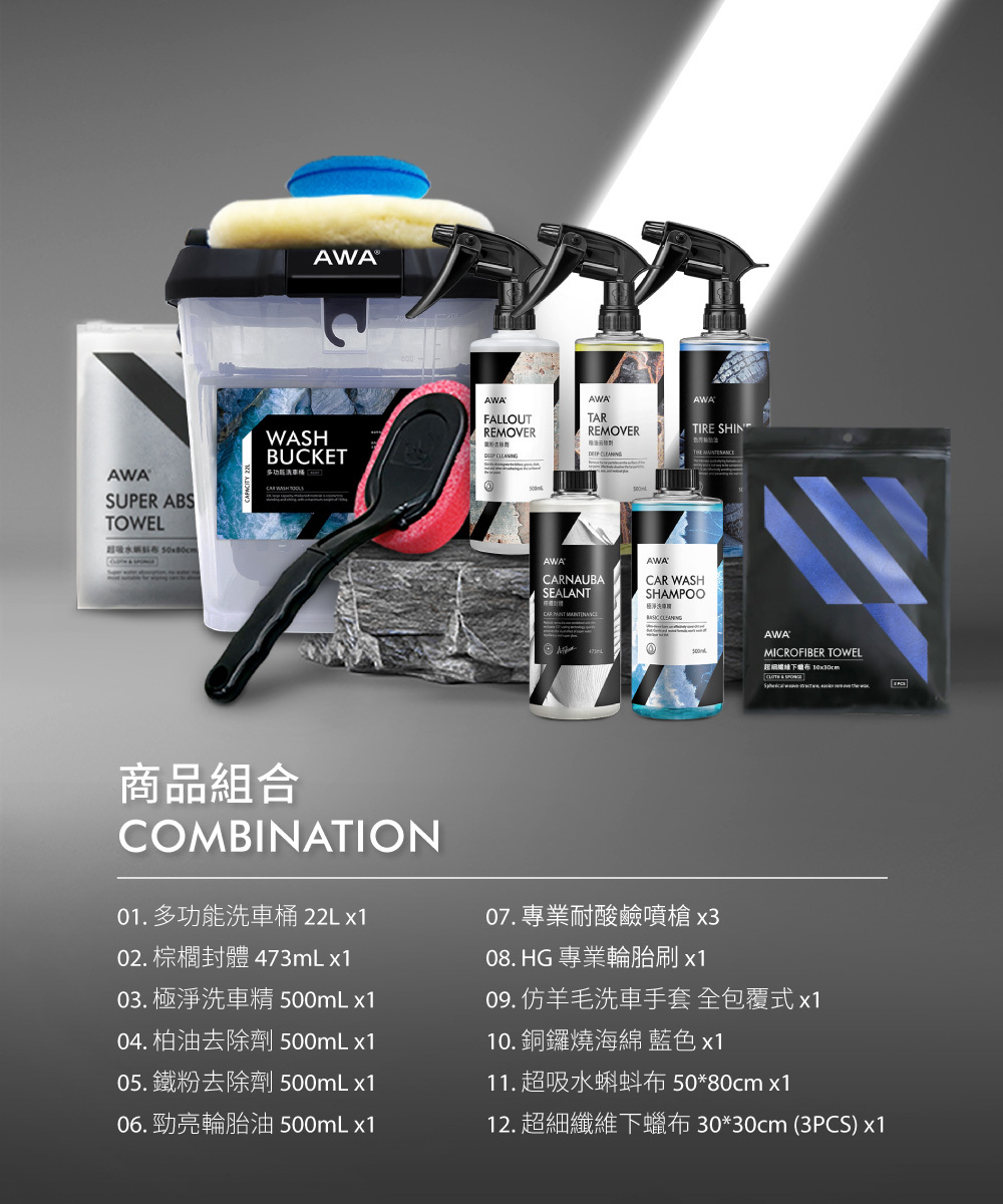R0050 多功能洗車桶入門組 棕櫚蠟/車蠟/洗車桶/洗車精/柏油/鐵粉/輪胎油/汽車美容